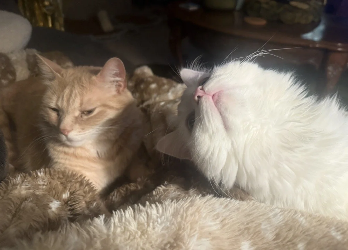 on her tablet with cats